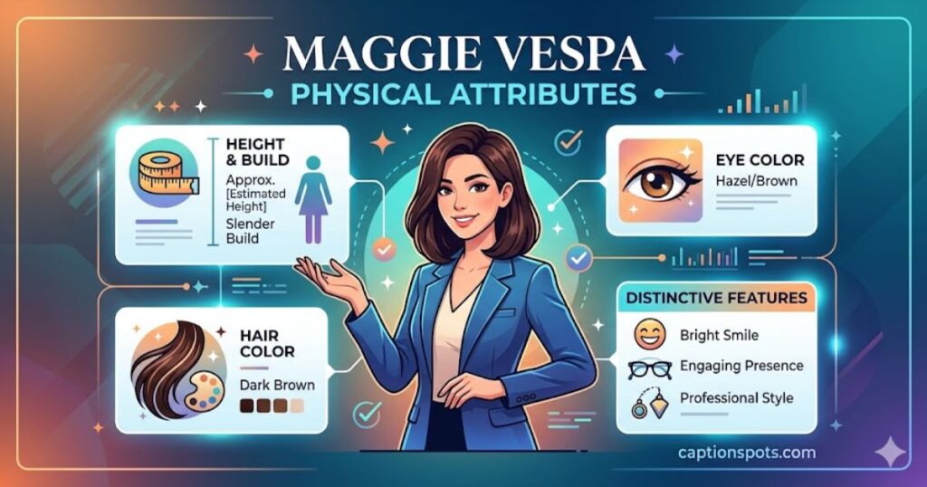 Maggie Vespa stands at approximately 5 feet 5 inches tall. While height may seem like a small detail, television presentation often highlights a journalist’s professional appearance. Her confident posture and clear communication style help reinforce her role as a respected Maggie Vespa news anchor in modern broadcast journalism.